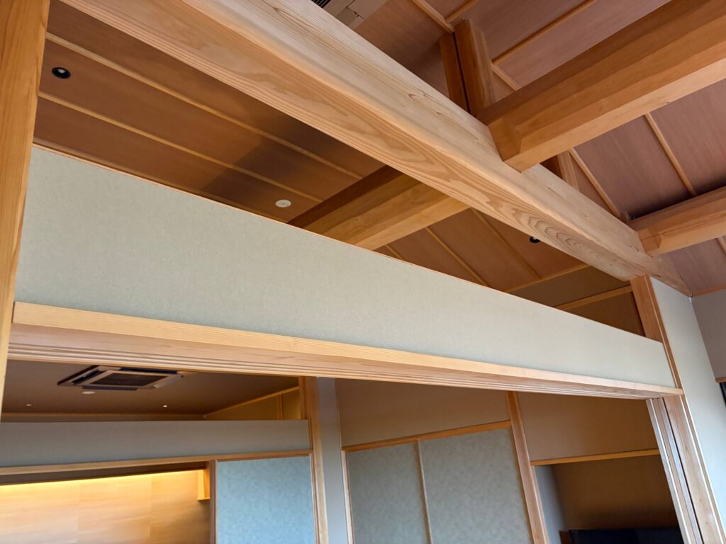 天井の梁が立派で、空間に高さがあって広々~。